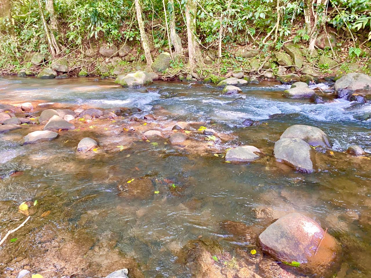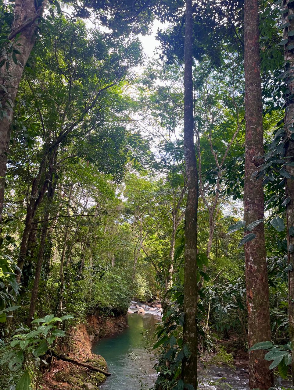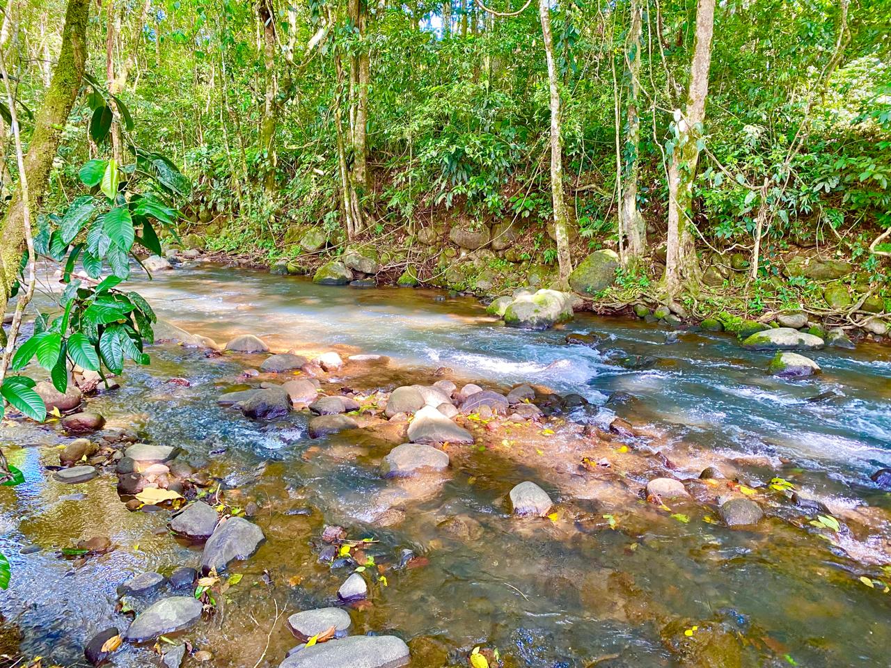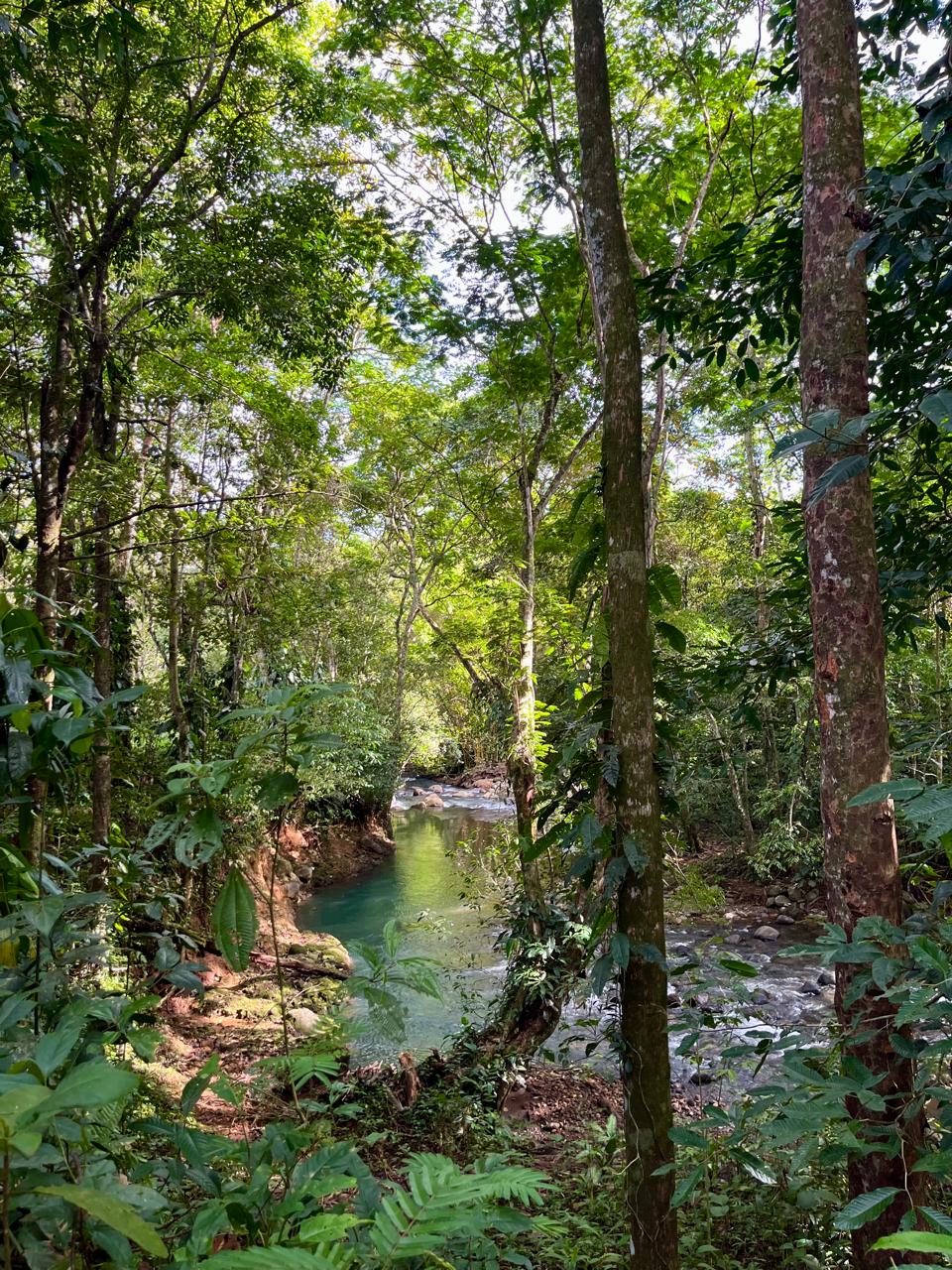 The property also has the sound of the river throughout, a large forest area, and many fruit and timber trees, including guanabana, almendro, teak, and blueberries.