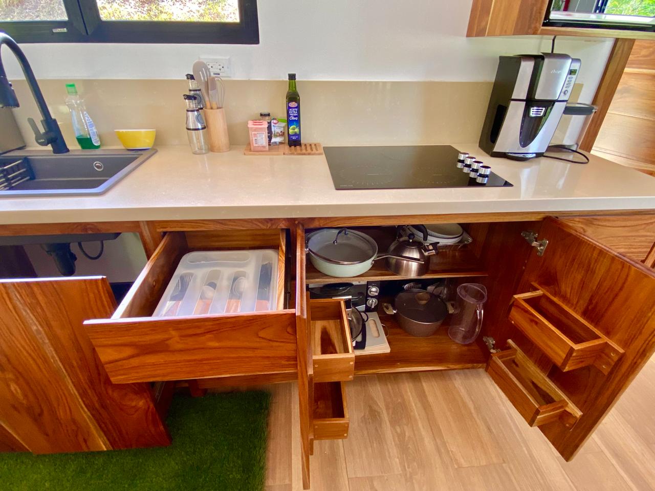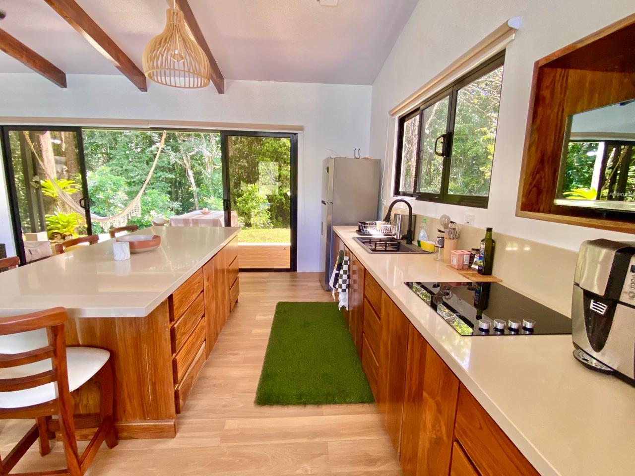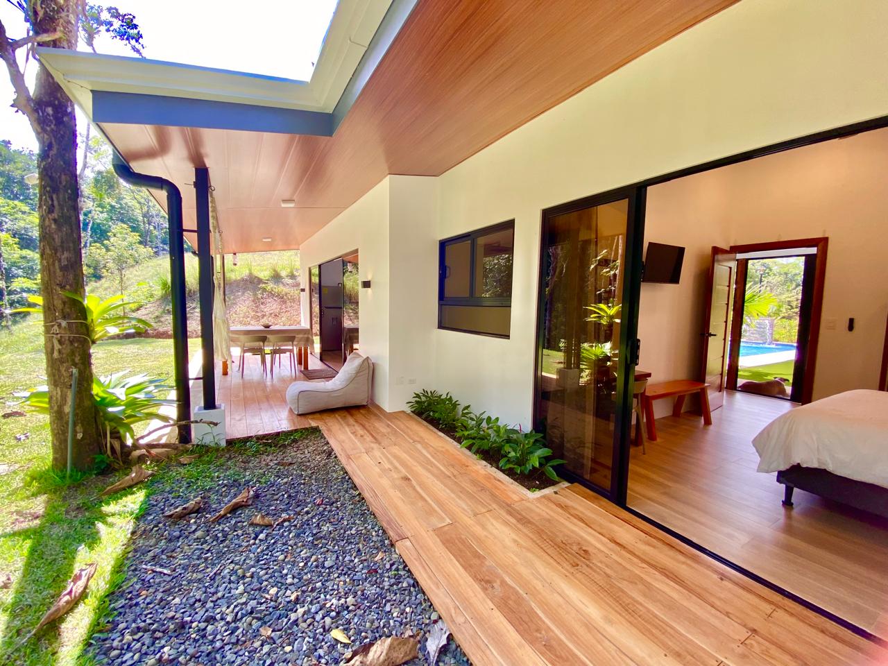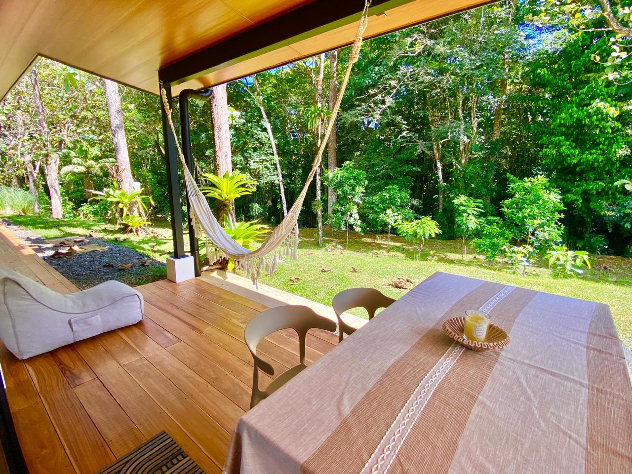 The property also has the sound of the river throughout, a large forest area, and many fruit and timber trees, including guanabana, almendro, teak, and blueberries.